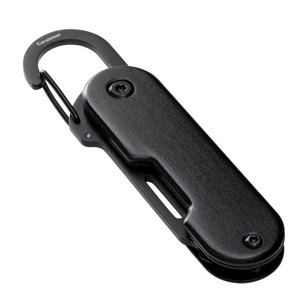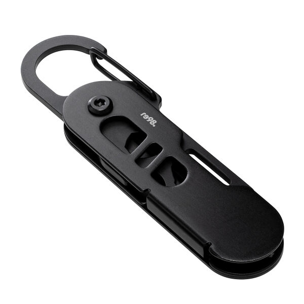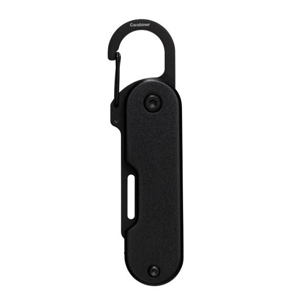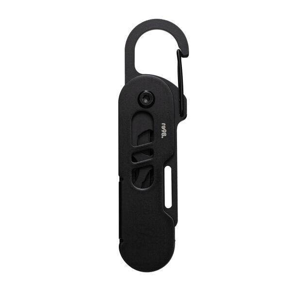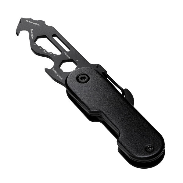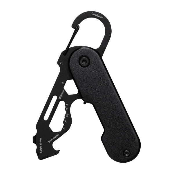 Ob unterwegs oder zu Hause – kleine Reparaturen und Anpassungen lassen sich nicht immer vermeiden. Mit diesem handlichen Multifunktionswerkzeug sind Sie für jede Eventualität bestens gerüstet! Das mattschwarze Werkzeug vereint 6 nützliche Tools in einem Taschenformat: Paketöffner, Sechskantschlüssel, Kreuzschlitz-Schraubendreher, Schlitzschraubendreher, Flügelmutter-Dreher und Flaschenöffner. Die Besonderheit des Paketöffners ist seine rückwärtige Schneide. Diese sorgt dafür, dass die scharfe Klinge nicht mit dem Paketinhalt in Kontakt kommt und der Inhalt vor Beschädigungen geschützt wird. Das Werkzeug aus robustem Edelstahl lässt sich durch Drehen leicht aus- oder einklappen. Dank des praktischen Clip-Karabiners können Sie das Tool an Taschen, Gürtelschlaufen oder dem Schlüsselbund befestigen – immer zur Hand und ideal für unterwegs! Der schwarz eloxierte Werkzeugschutz aus Aluminium bietet eine angenehme Haptik und stellt eine präsente Werbefläche zur Verfügung. Ihre Werbung kann mittels Lasergravur aufgebracht werden. Geliefert wird RE98-Matti in einer braunen 1C-Geschenkverpackung.